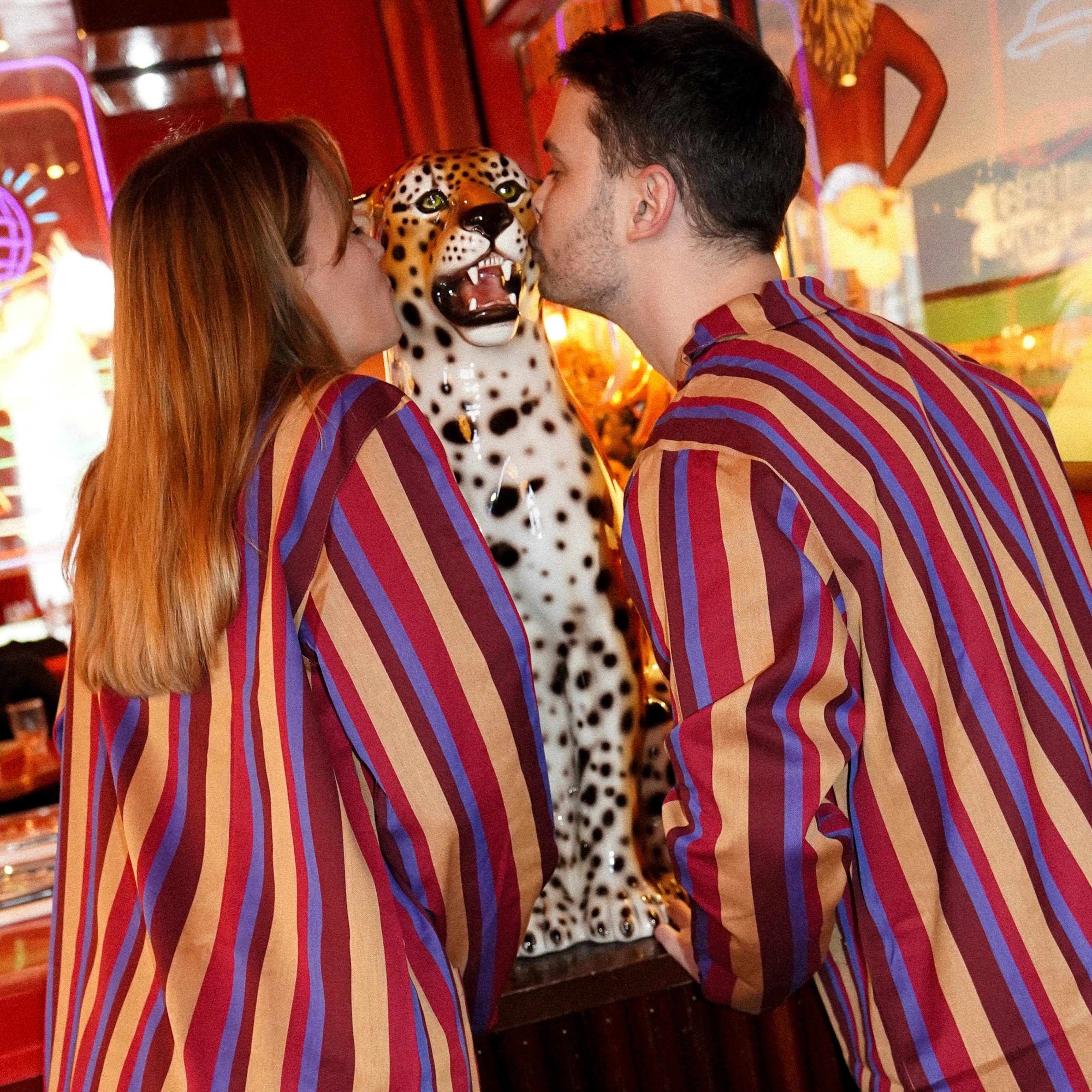 In 2023, Nufferton launched a limited-edition collaboration with American actress Juliette Lewis. The drop featured our iconic Uno Classic and Uno Nightshirt - both dressed in a bold, wide-striped pattern in red, peach, burgundy, and blue. A single colorway, handpicked by Lewis herself, designed to celebrate individuality, attitude, and fearless expression.